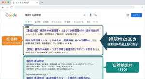 どれだけ実績のある大手事務所であっても、広告を出していなければ、貴社の広告の下に表示されます。「お金」をかけるだけでなく、広告の「質」を高めることで、小規模な事務所でも地域一番の視認性を確保できるのです。