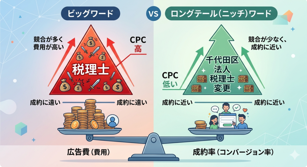 ただ広告を出せば良いわけではありません。士業は業種によって顧客のニーズが大きく異なります。それぞれの特性に合わせたキーワード戦略が必要です。